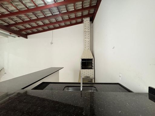 Com área gourmet coberta no fundo;