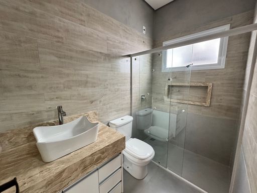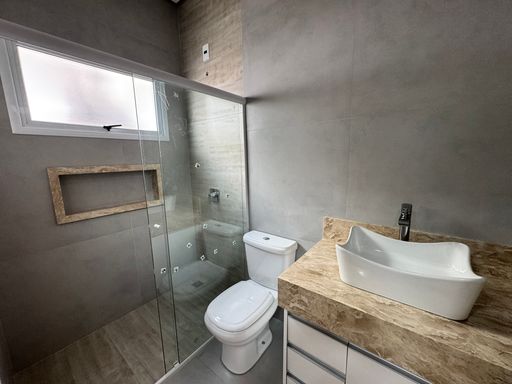 Com 196 m² de construção em terreno bem aproveitado, a casa oferece 3 dormitórios, todos suítes, sendo que um deles conta com espaço planejado para closet. O projeto alia conforto, sofisticação e funcionalidade em cada detalhe.