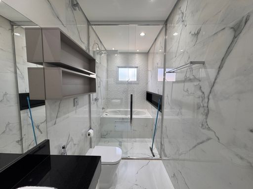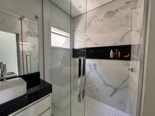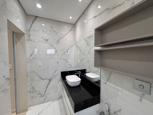 O acabamento em porcelanato aliado à iluminação em LED valoriza cada detalhe do imóvel, criando um ambiente moderno e acolhedor.