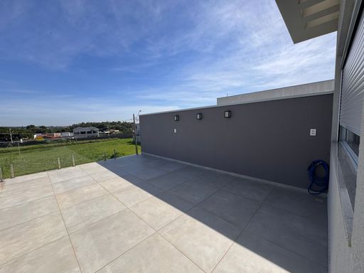 No pavimento superior, a casa conta com duas suítes amplas, proporcionando privacidade e conforto aos moradores. Todos os ambientes possuem esquadrias elétricas, garantindo praticidade no dia a dia.